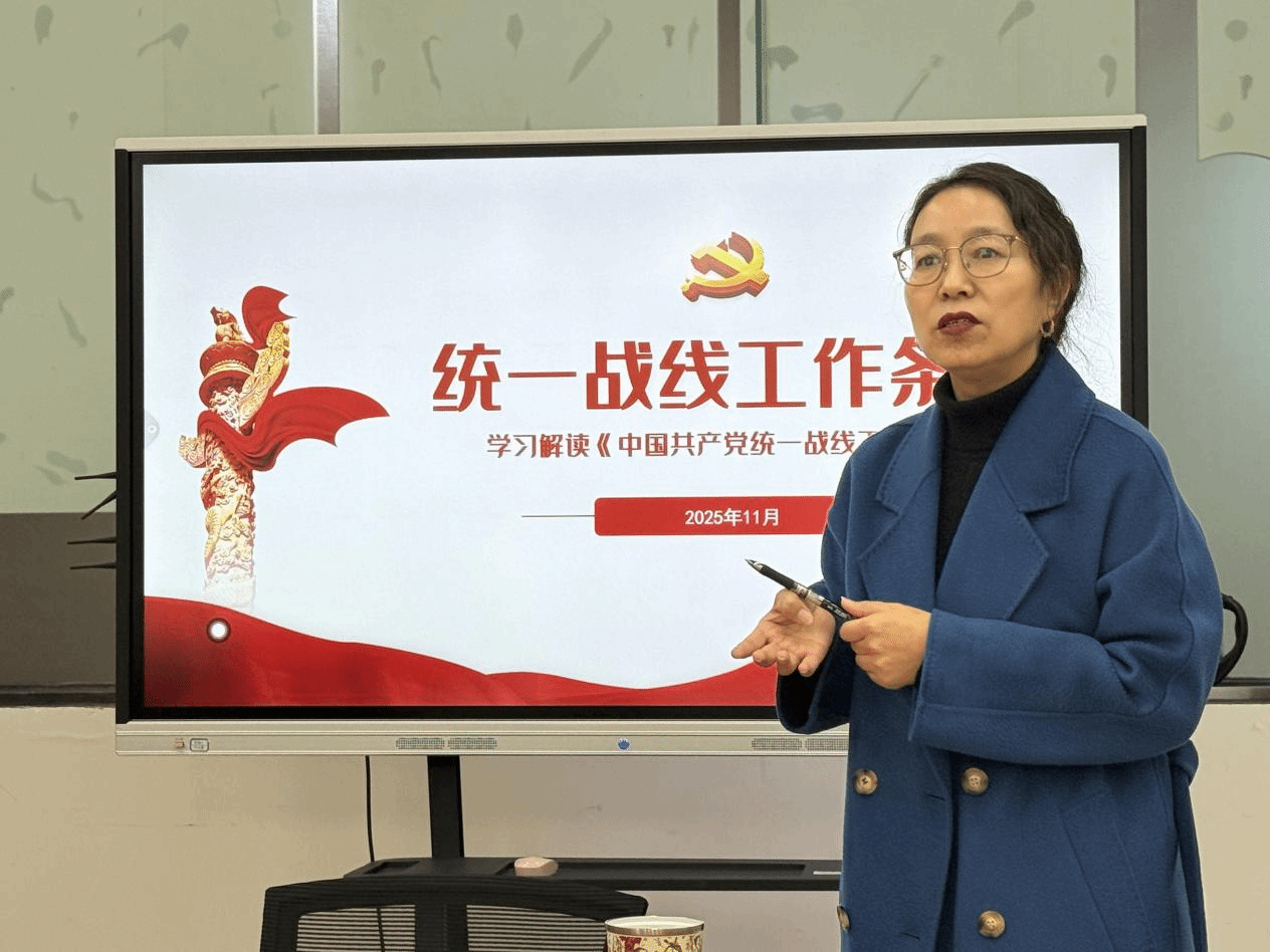 为深入贯彻落实中央关于统一战线工作的方针政策,2025年11月18日下午,服装工程与设计学院在织锦楼E213会议室召开《中国共产党统一战线工作条例》(以下简称《条例》)专题学习会。学院党总支书记太扎姆主持会议并作主讲,学院领导班子成员、无党派人士代表、党外知识分子代表、副高以上非党员教师、教工支部支委委员及专职辅导员等与会。