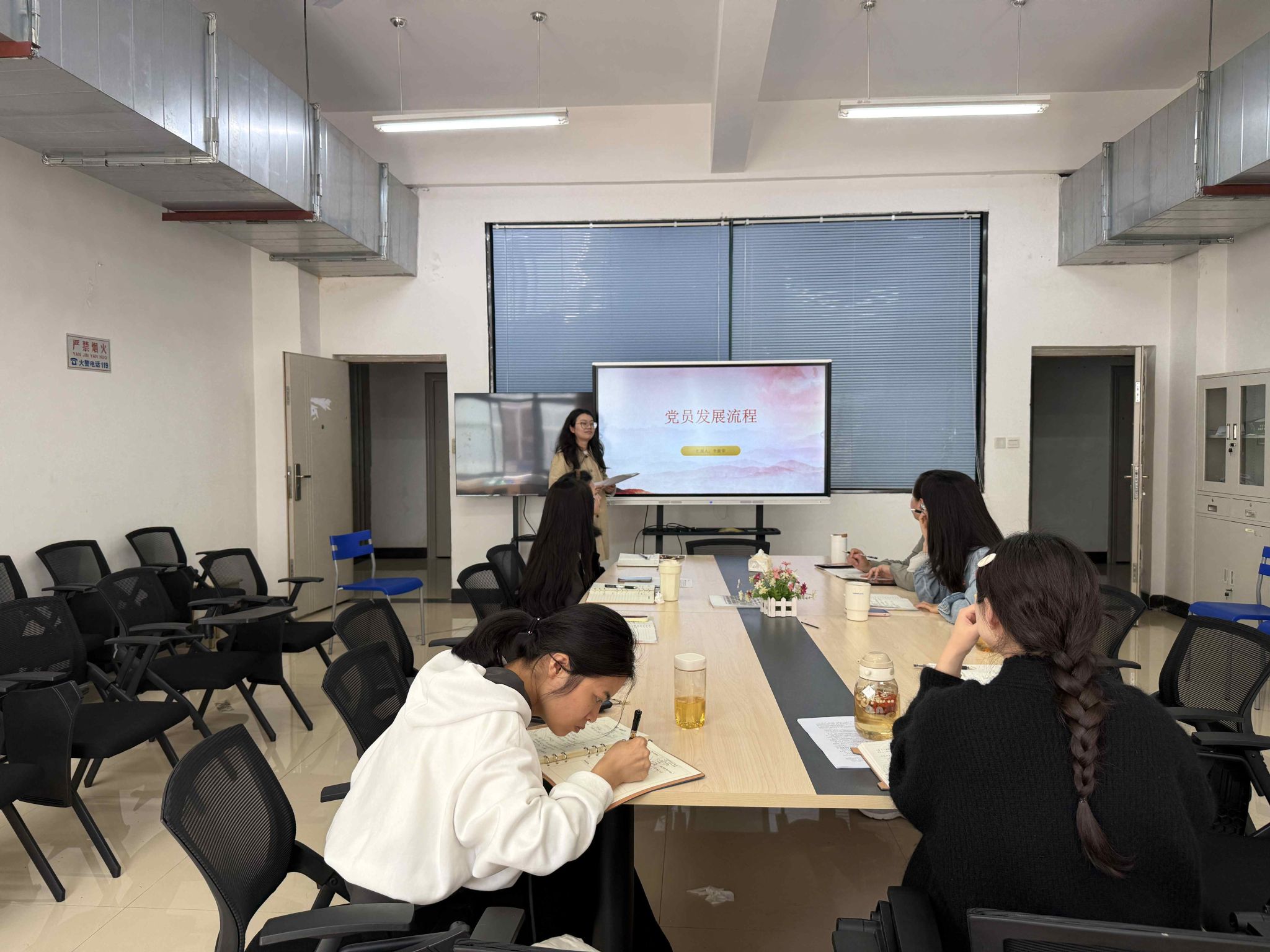 本期培训由学生党支部支委李傲荣、尹凤两位同志主讲,聚焦党务核心业务与制度规范开展专题授课。李傲荣以《党员发展流程》为题,围绕党员发展工作的总体要求、关键环节、材料规范、注意事项等内容进行系统讲解,结合实际案例梳理流程要点、厘清工作衔接,助力支委精准把握党员发展工作的严肃性与规范性。尹凤围绕《中国共产党党员教育管理工作条例》进行深入解读,重点阐释《条例》出台背景、核心要义与实践要求,对党员教育管理的主要内容、方式方法、组织保障等进行细致辅导,引导支委切实把《条例》要求融入日常党建工作,提升党员教育管理质效。