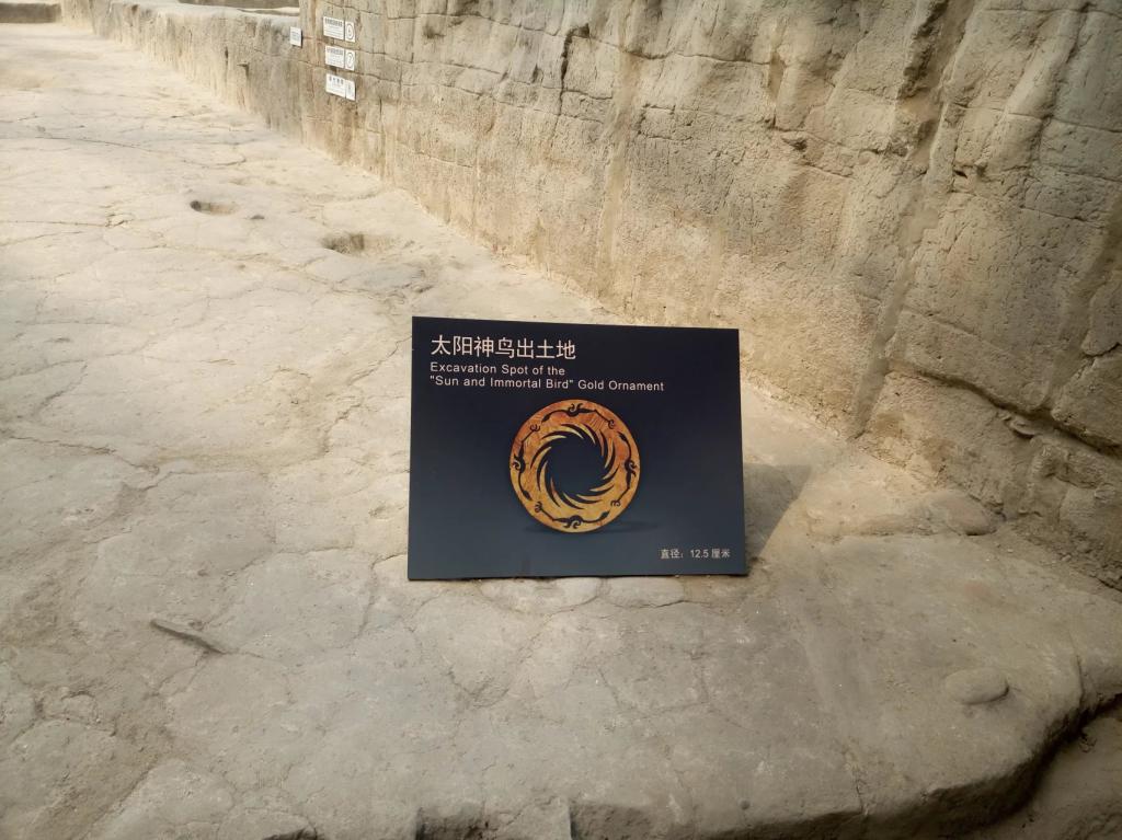走进金沙遗址博物馆,闯入眼帘的是金沙遗址博物馆的镇馆之宝---太阳神鸟的大型雕塑。顿时,古蜀文明的璀璨与神秘的印象就在我们心中慢慢形成。沿着金沙遗址博物馆的主干道,我们来到了遗迹馆。走进遗迹馆里,我们看到了当年发掘的现场,并在讲解员的讲解下,关于几千年前的金沙遗迹的全貌在我们的脑海中浮现,我们除了惊叹古蜀先民们的智慧与伟大外,更对古蜀文明的神秘多了些许好奇。