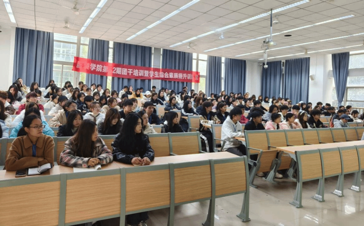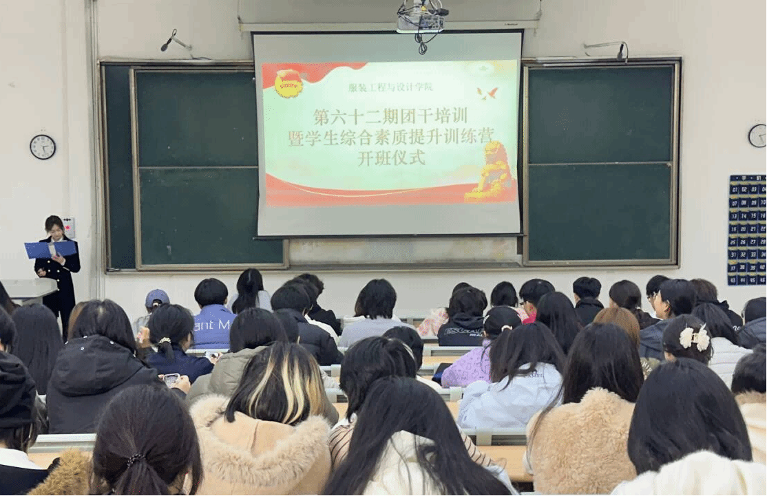 11月4日下午,服装学院团学干部培训暨学生综合素质提升训练营开班仪式在南苑致知楼C202教室正式举行。为深入践行共青团育人使命,加强服装学院青年骨干队伍建设,本次培训围绕“思想铸魂、务实赋能、协作共进”三大核心设计课程,旨在以提升思想意识夯实履职根基,以专业能力淬炼担当本色,以团结协助凝聚强大合力。马克思主义学院教研室主任黄飞燕、学院团总支书记赵爽、辅导员李傲荣与滕佳鑫等老师参加了开班仪式,服装学院团学会全体干部干事及部分班长、团支书等近200名学生骨干齐聚现场,共同开启一场赋能成长的学习之旅。