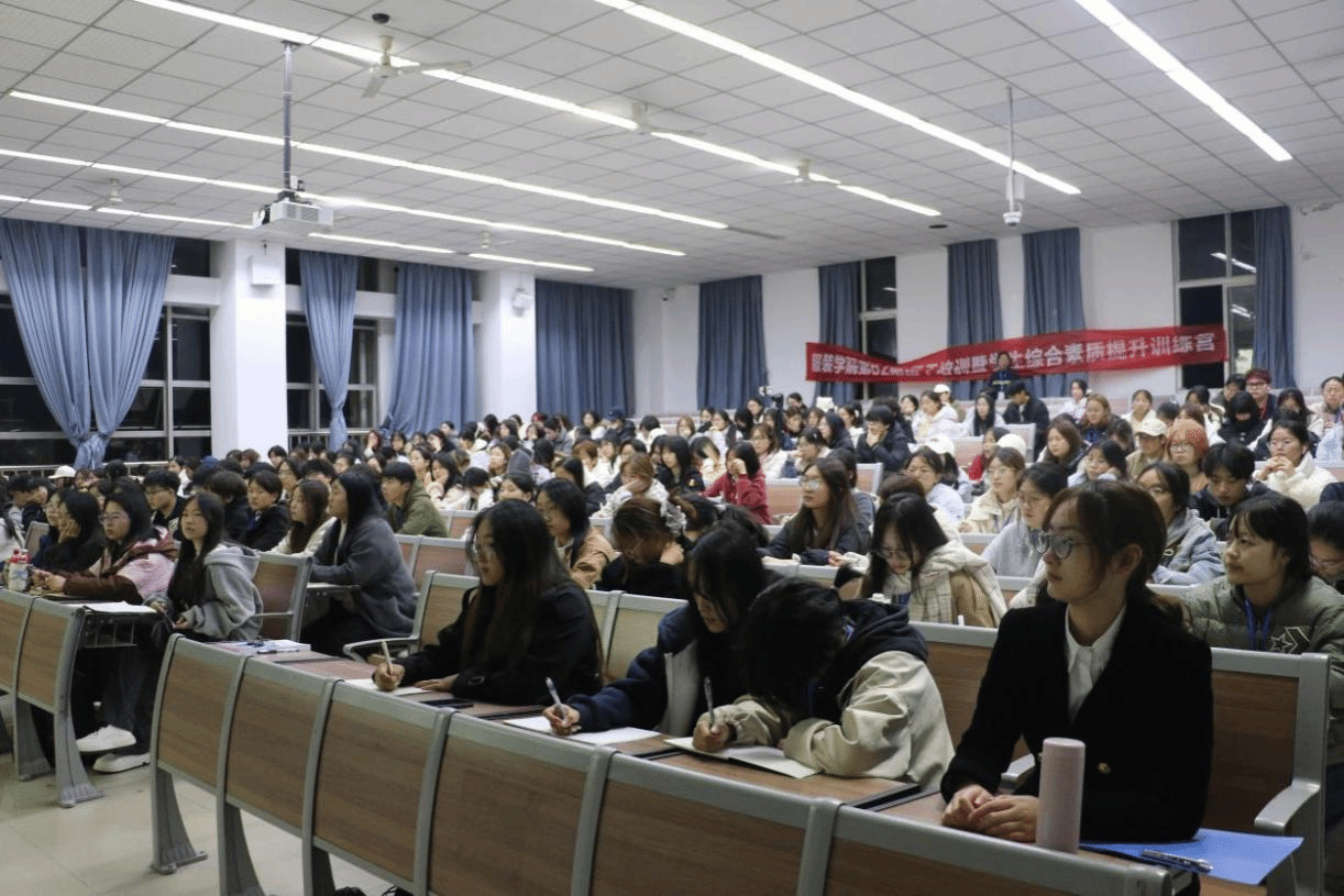 团总支学生会指导老师李傲荣、全体干部干事和2025级班长、团支书等近200人参加培训。