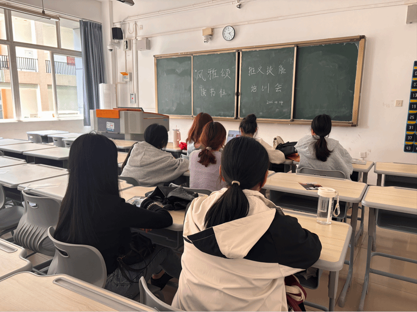4月14日,“风・雅・颂”读书社在致知楼A305教室,以线上线下结合的方式举办推文技能专题培训会。社团主要负责人及骨干成员参与本次学习培训,旨在通过内部赋能提升社团宣传能力,带动更多同学参与读书分享、营造校园书香氛围,助力社团文化建设与校园文化传播。