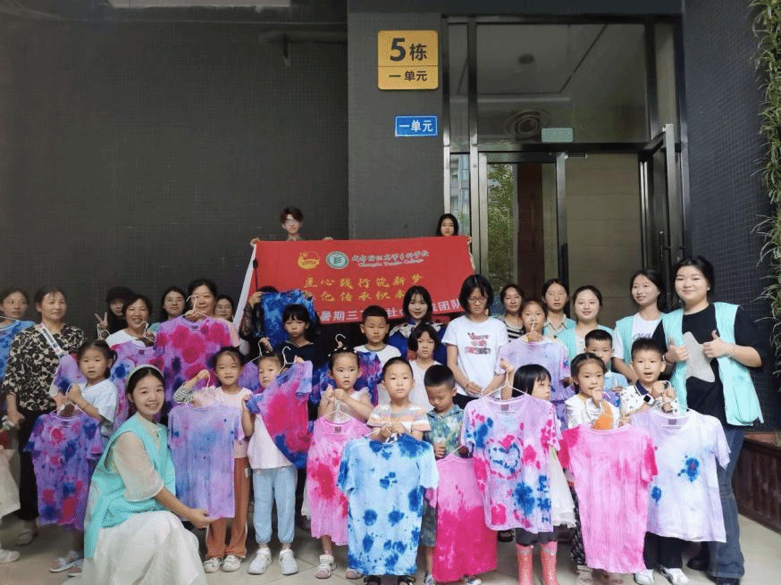 7月9日,服装学院“匠心织梦”社会实践团队前往五粮社区开展“扎染非遗,服饰生花”志愿服务活动。通过实践体验,让小朋友们切实感受非遗扎染的魅力所在,传承与发扬非物质文化遗产,同时普及服装服饰小知识,提升小朋友们的文化素养与专业兴趣。