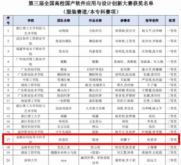 国产软件是推动我国“新质生产力”发展的重要载体,更是产业数字化转型升级的重要工具,本次获奖,不仅体现了服装学院对服装数字化设计教学应用的重视,也体现了服装新型设计人才培养的有效成果,学院将持续加强教育教学融入新技术、新工艺、新方法、新标准,培养适应行业产业发展需求的高素质技术技能人才。