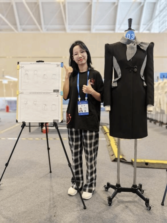 宝剑锋从磨砺出,梅花香自苦寒来。代表四川省参加时装技术(世赛)项目的选手是服装设计203班学生涂文梅,2020年她刚进校就作为四川省集训队员与第一届全国技能大赛时装技术(世赛)项目选手时玉凤一起集训。第一届全国技能大赛结束后,她也积极地参加“川渝杯”、“中缝重工”等技能比赛磨练自己。