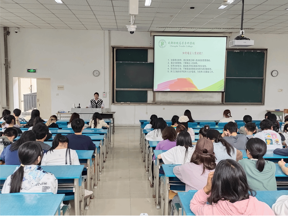 2023年9月26日下午,服装工程与设计学院在南苑教学楼c306开展了团总支书记讲团课暨新生入党启蒙宣讲活动。主题团课由学院团总支书记赵爽主讲,优秀学生党员领衔参与入党启蒙宣讲,各班新生代表参与聆听。此次活动旨在通过榜样的力量激励团员青年,帮助团员青年了解党的光辉历程并学习党的基本理论,引导团员青年积极向党组织靠拢。