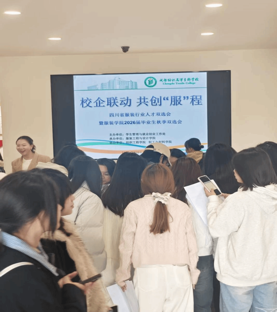 10月30日,服装学院在四川省服装服饰协会的协同支持下,联合纺织工程学院、轻工与材料学院协办,于学校南苑致知楼“一站式”就业育人基地成功举办2026届毕业生秋季专场双选会,此次双选会是为切实拓宽2026届服装相关专业毕业生就业渠道,精准搭建校企人才对接平台,亦是“蜀汇菁英”四川省高校毕业生就业常设市场食品轻纺产业专场招聘会的重要组成部分,聚焦食品轻纺产业尤其是服装行业人才需求,汇聚14家四川省属地优质服装企业,带来130余个优质岗位,为毕业生与企业搭建起高效沟通的“双向奔赴”桥梁。