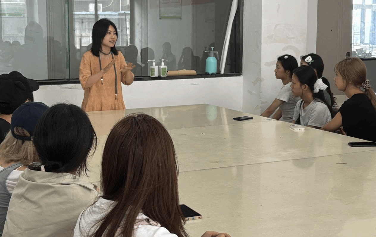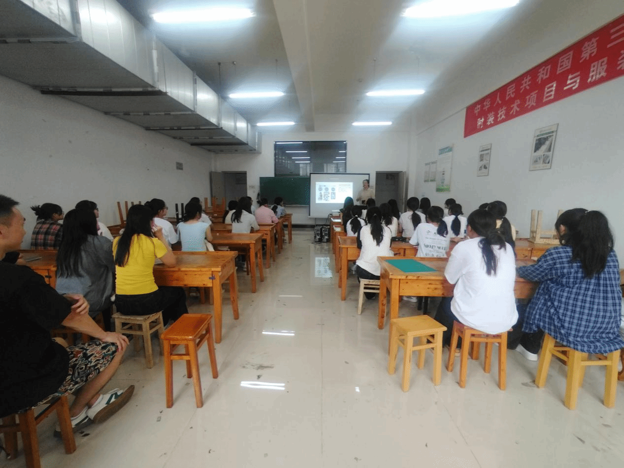 (优秀校友、红念服饰有限公司设计总监覃梦为学生做服装与服饰设计专业介绍)
