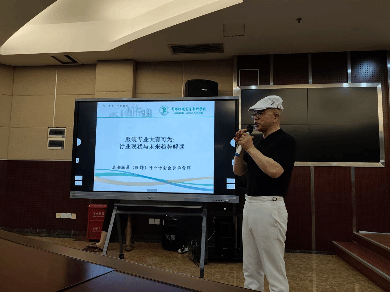 (成都服装(服饰)行业协会会长李雪辉为学生做服装设计与工艺专业介绍)