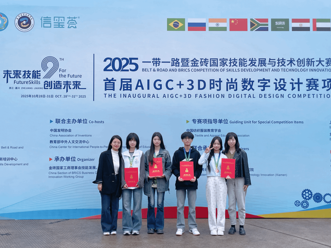 在10月31日落幕的2025一带一路暨金砖国家技能发展与技术创新大赛-首届AICG+3D时尚数字设计赛项中,我校服装工程与设计学院两支参赛队伍在几百支队伍里冲出重围,进入决赛。凭借扎实的专业技能和出色的临场发挥,从60支决赛队伍中脱颖而出,其中户箫、陈毅,代美玲、陈国琳四位同学分别荣获大赛二等奖与三等奖,展现了学校在AIGC+3D设计技术技能人才培养方面的雄厚实力。